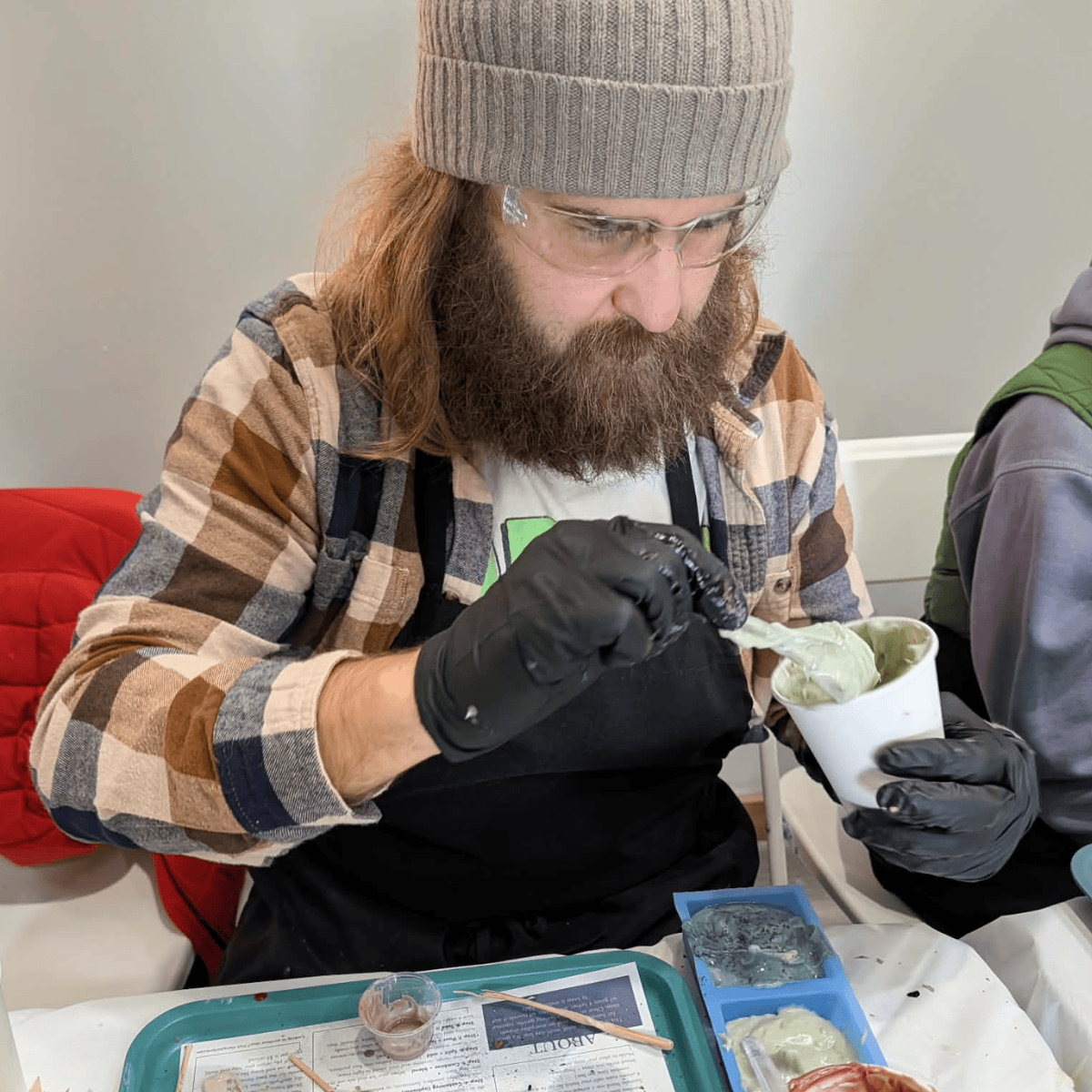 This is a hands-on class with a few safety requirements. Everyone must wear the provided goggles and gloves the entire time. Masks are optional, but you are encouraged to bring your own. All participants must be 18 years old.
