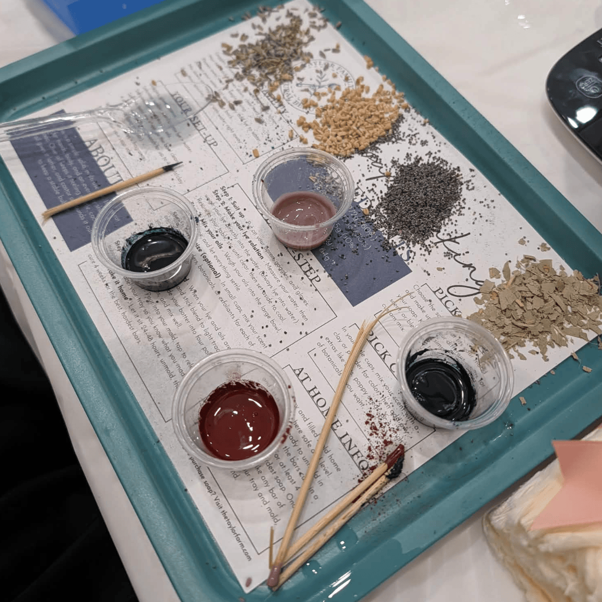 Everything is included: all materials, your mold of 4 soaps to take home, and simple printed instructions for unmolding and curing. Spots are limited to 12 seats.